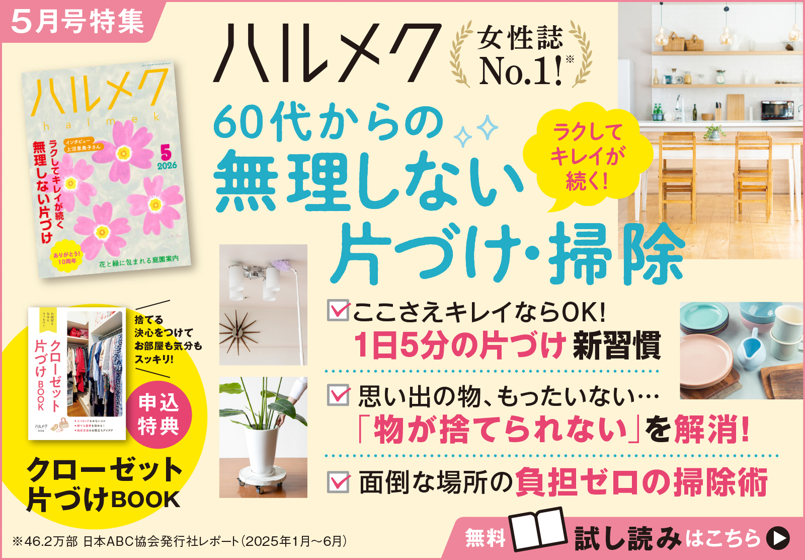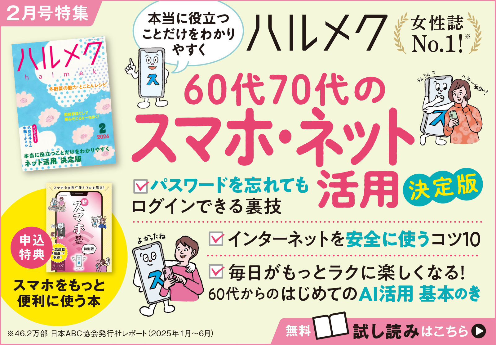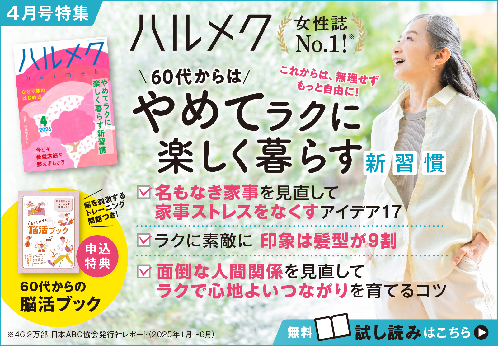 (会員制ウェブサービス)50代からの女性に寄り添う新しいメディア。仕事、子育て、心と体の変化など、人生の転換期にある女性たちへ、毎日が楽しみになる情報をお届けします。