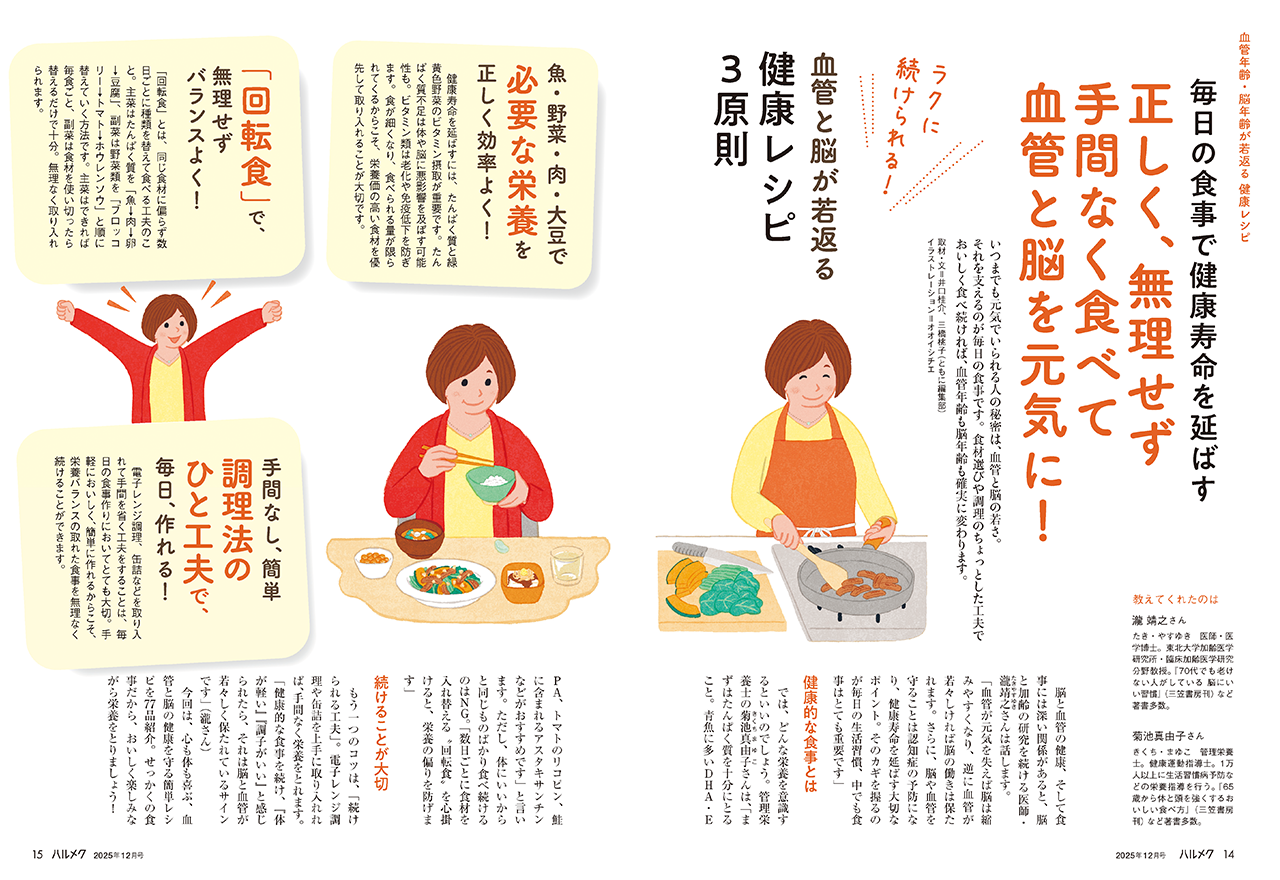 それを支えるのが毎日の食事です。食材選びや調理のちょっとした工夫でおいしく食べ続ければ、血管年齢も脳年齢も確実に変わります。