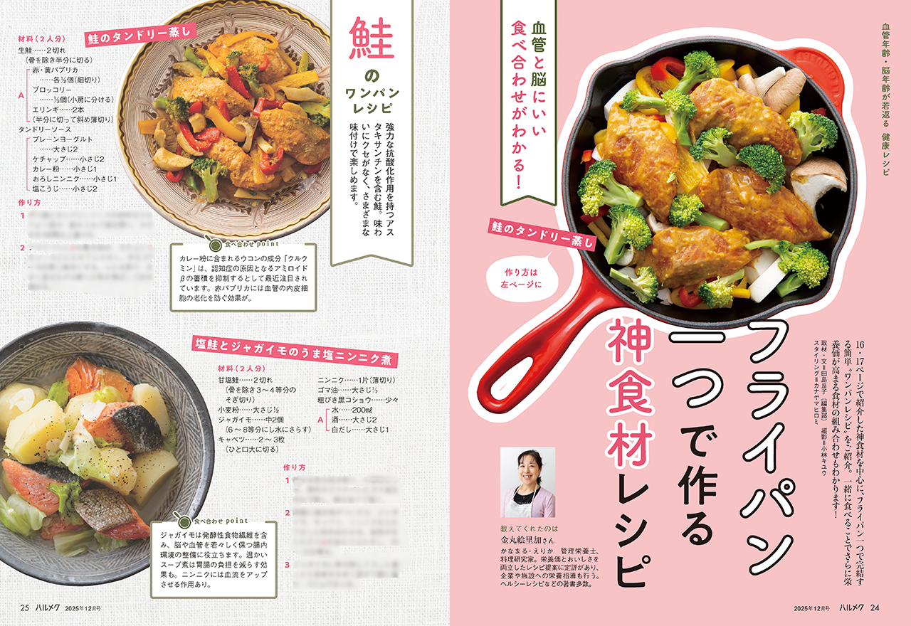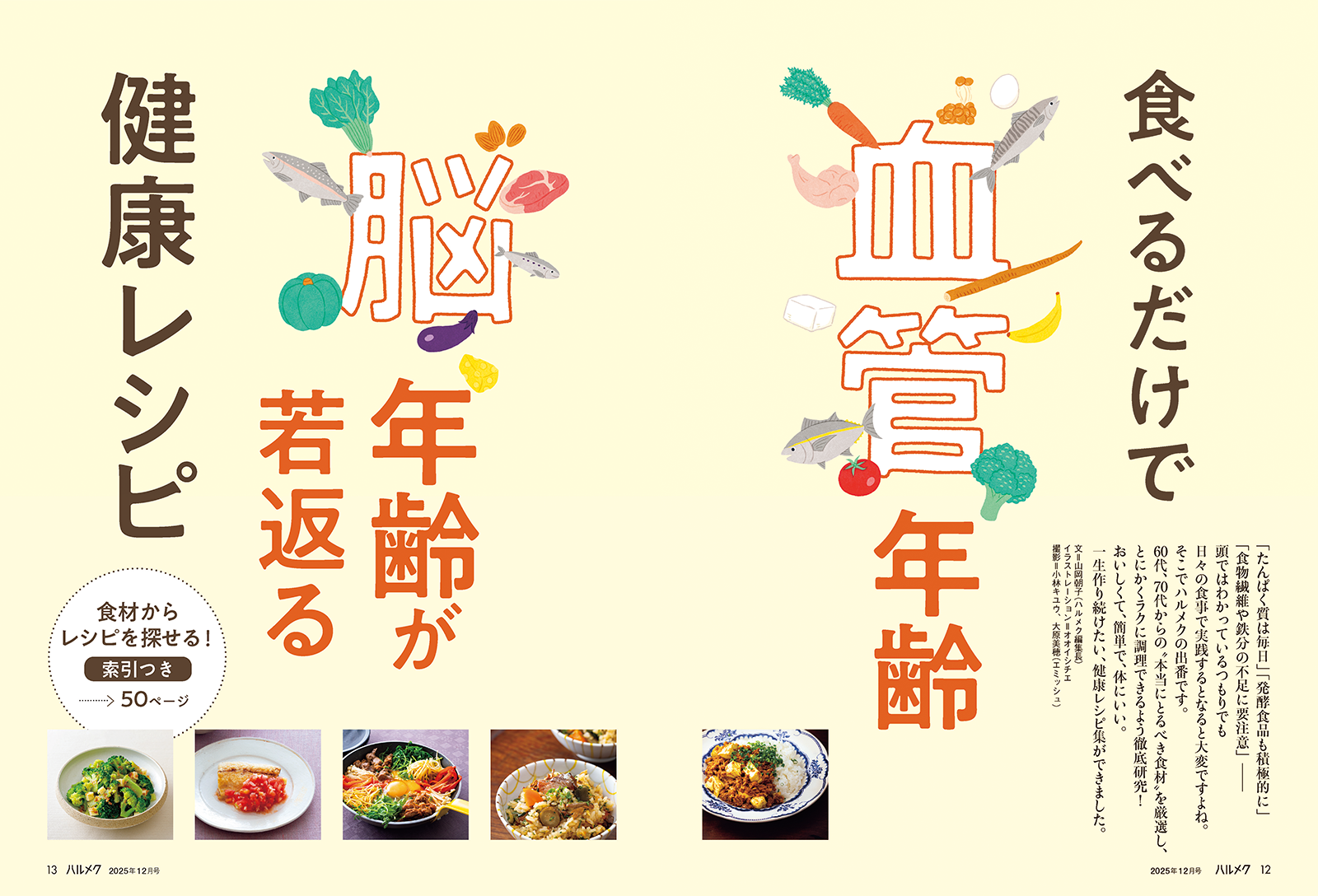 今回の特集では、血管と脳を守る“神食材”を使った健康レシピを77品紹介。フライパン一つで作れる超簡単メニューから、料理家一家の堀江ひろ子さん&ほりえさわこさんによるアイデア満載レシピまで、続けやすい工夫が詰まっています。