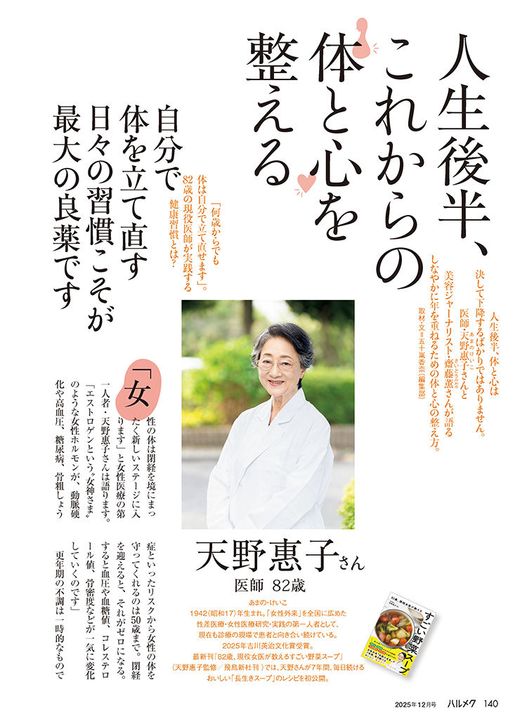 医師・天野惠子さんと、美容ジャーナリスト・齋藤薫さんが語る、しなやかに年を重ねるための体と心の整え方。
