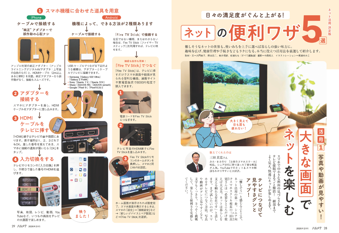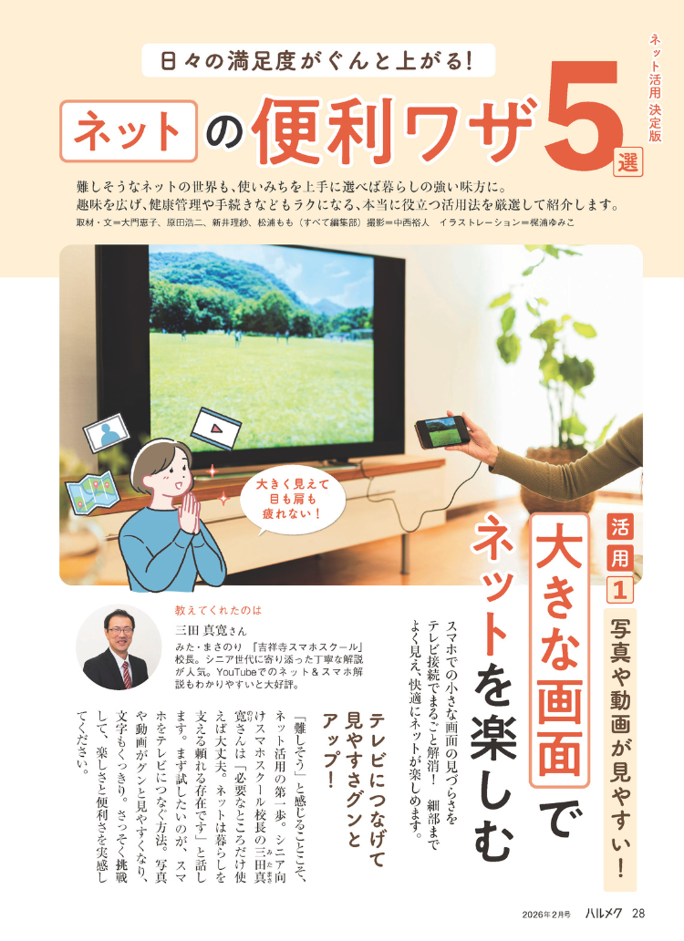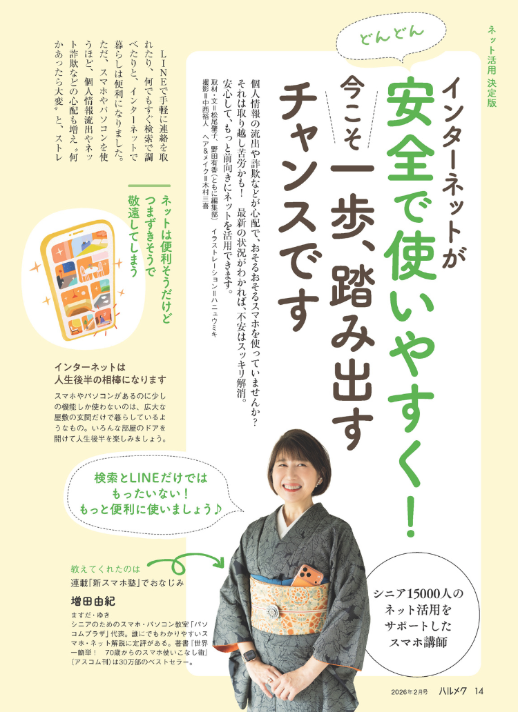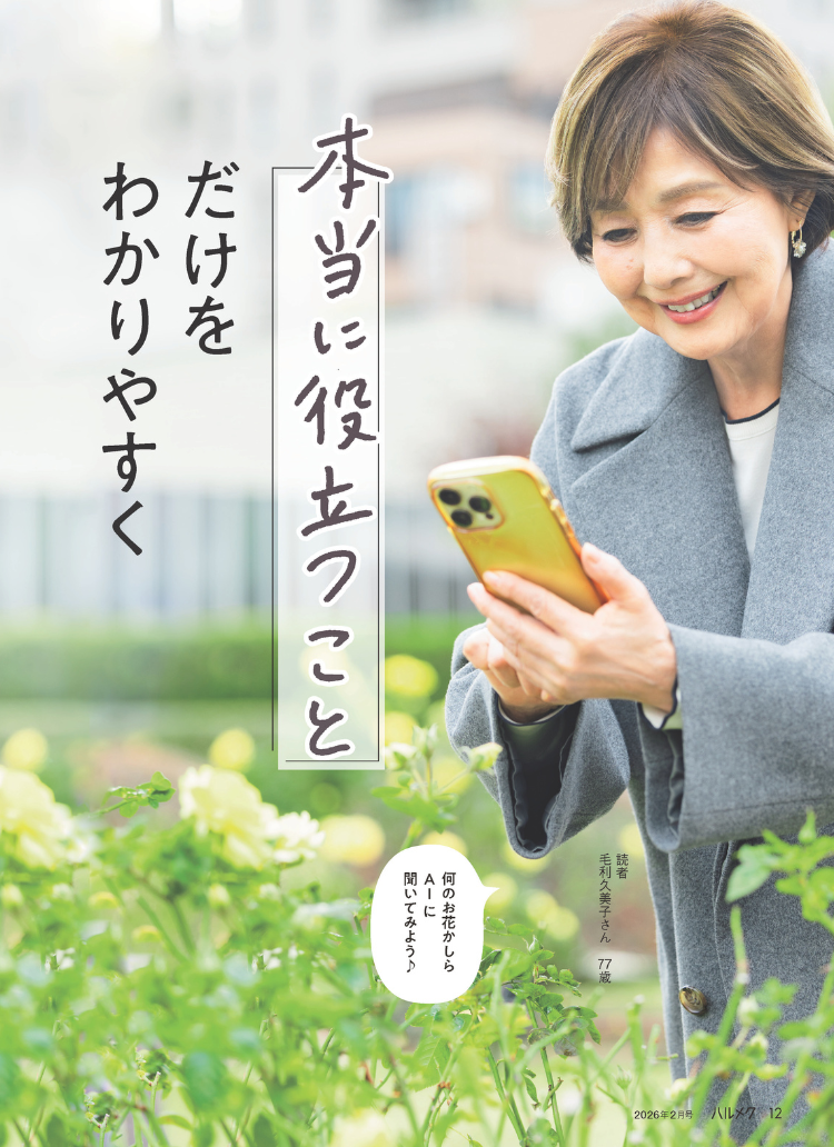 各種サービスの予約や買い物、映画やドラマの配信など、インターネットであらゆることができるようになりました。便利になった一方で、個人情報の流出やネット詐欺など、新たな心配も。本当はもっとネットを使いたいのに、「騙されそうで怖い」「操作を間違えたらどうしよう」と、二の足を踏んでしまうことはありませんか。今回の特集では、そうした不安やモヤモヤの正しい対処法をかみ砕いてやさしく解説します。さらに、無限にあるネット活用法の中から、この世代の女性におすすめのワザを厳選してご紹介。もちろん、今話題の「AI」についても取り上げ、「ネットで暮らしをもっと便利に楽しく」を徹底的にお手伝いします。