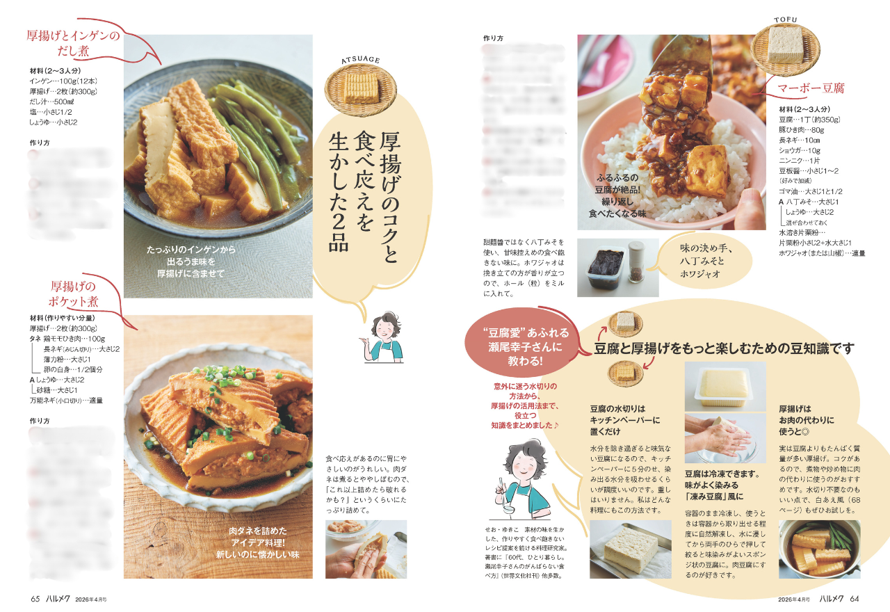 レパートリーの中でも特におすすめの豆腐・厚揚げレシピを教わりました。