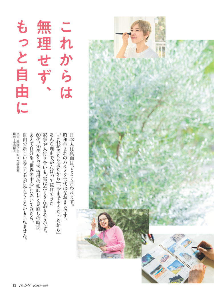 暮らしの選択肢は、年齢とともにむしろ広がっていきます。これまでの習慣を今の自分に合う形に変えたり、新しく始めたりできるのは、経験を重ねた今だからこそです。