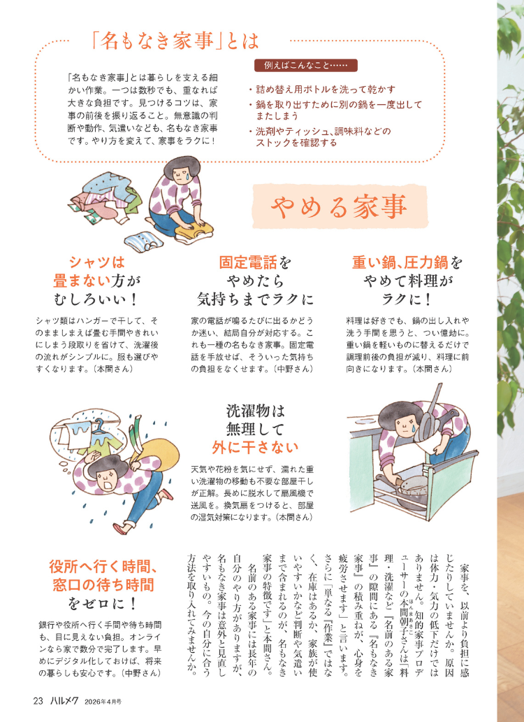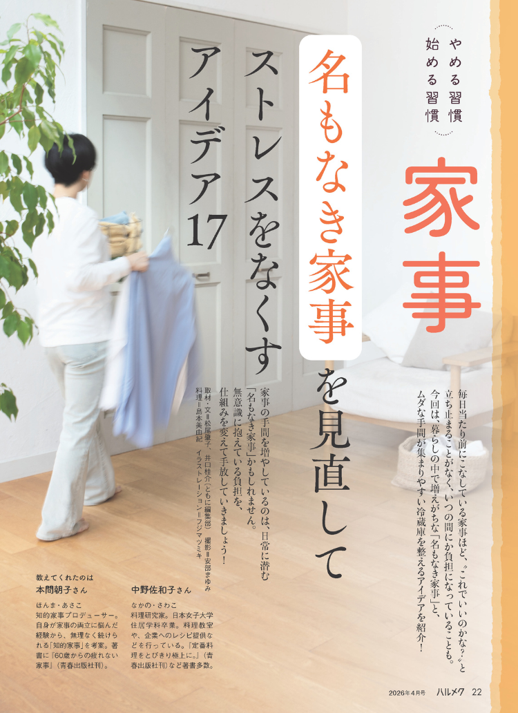 知的家事プロデューサーの本間朝子さんは「家事を減らすことは、これからの人生を守る選択」と語ります。続けやすい形にすれば、家事は負担ではなく、暮らしを心地よくするものへ変わります。
