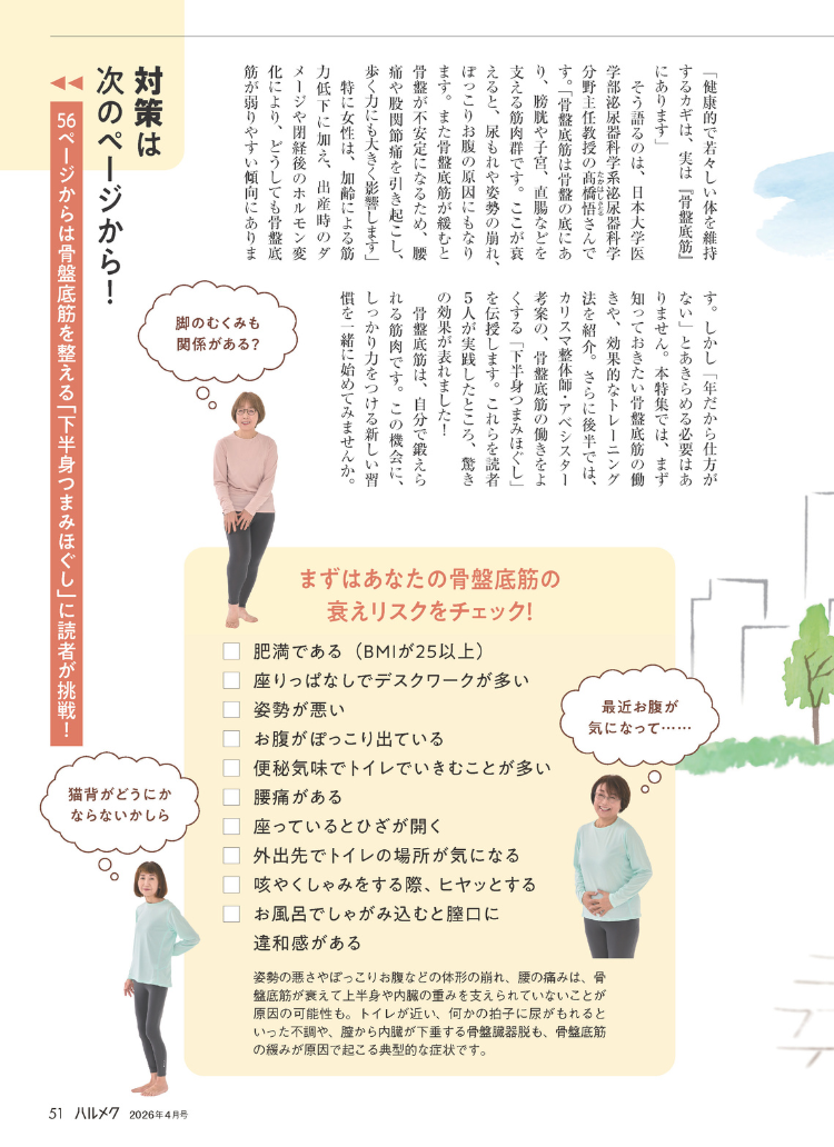 姿勢の崩れや腰痛、尿もれ…。そんな気になる不調の原因は「骨盤底筋」の衰えにあるかもしれません。