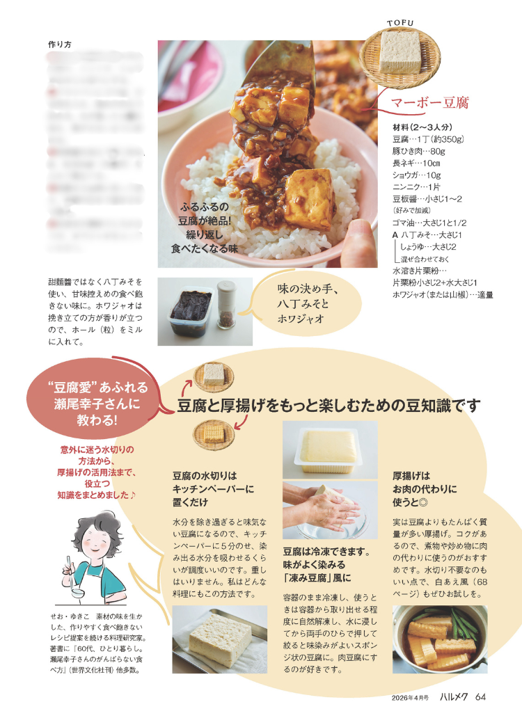 「たんぱく質がしっかりとれて消化吸収もいい。年を重ねるほど、豆腐のありがたみを実感します」と人気料理研究家の瀬尾幸子さん。