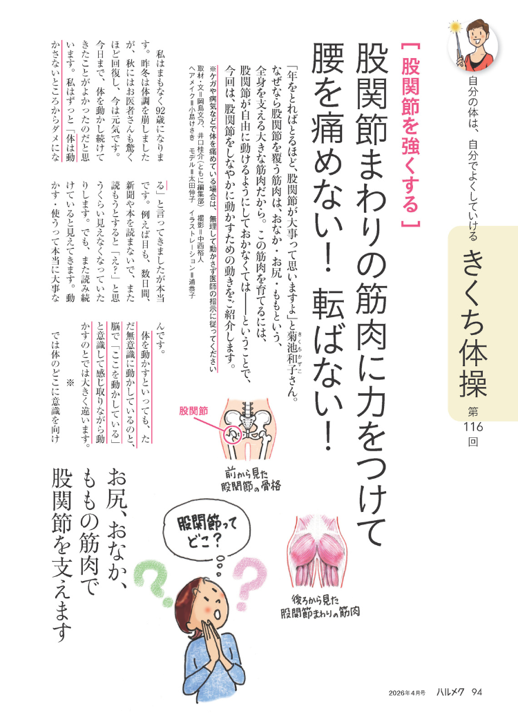 「年をとればとるほど、股関節が大事って思いますよ」と菊池和子さん。