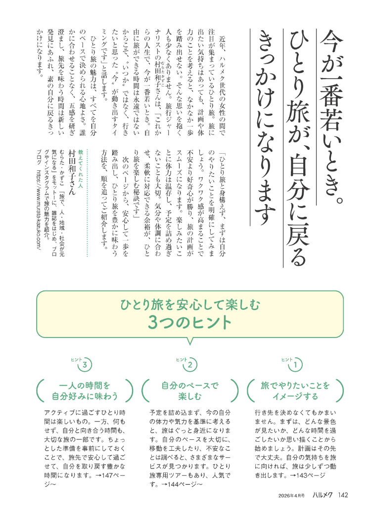 日常の忙しさから少し離れて、今の自分にちょうどいい時間を過ごす…そんな「ひとり旅」が、ハルメク世代の間で広がっています。