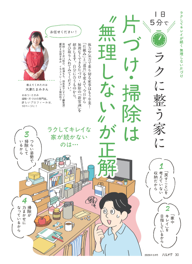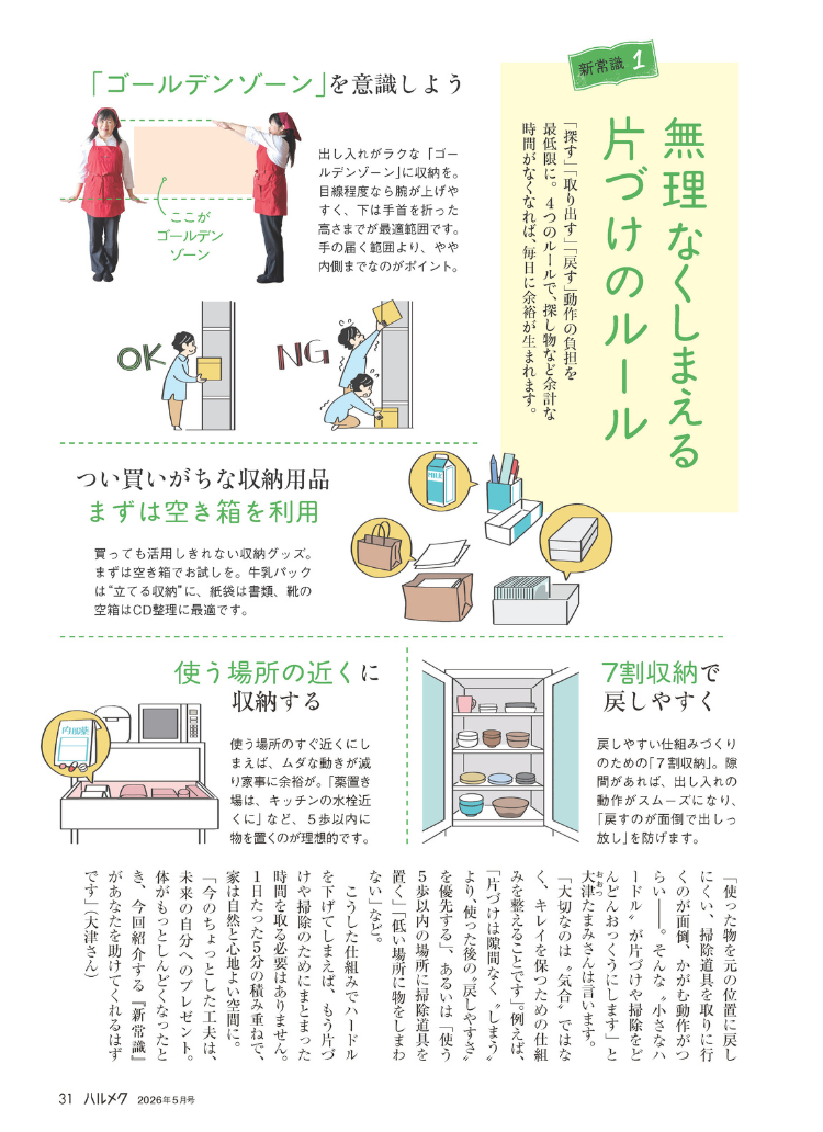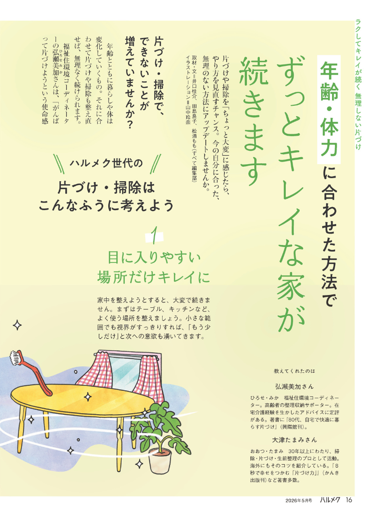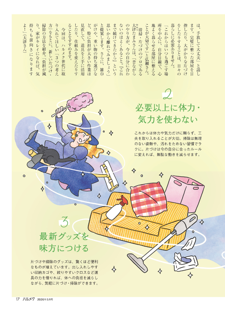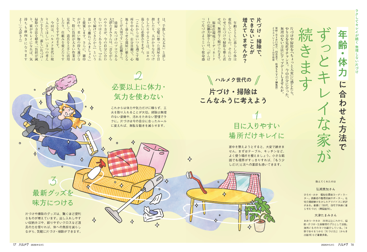 ハルメク5月号の片づけ・掃除特集では、次の3つの視点から、今の年齢に合った整え方をご紹介します。