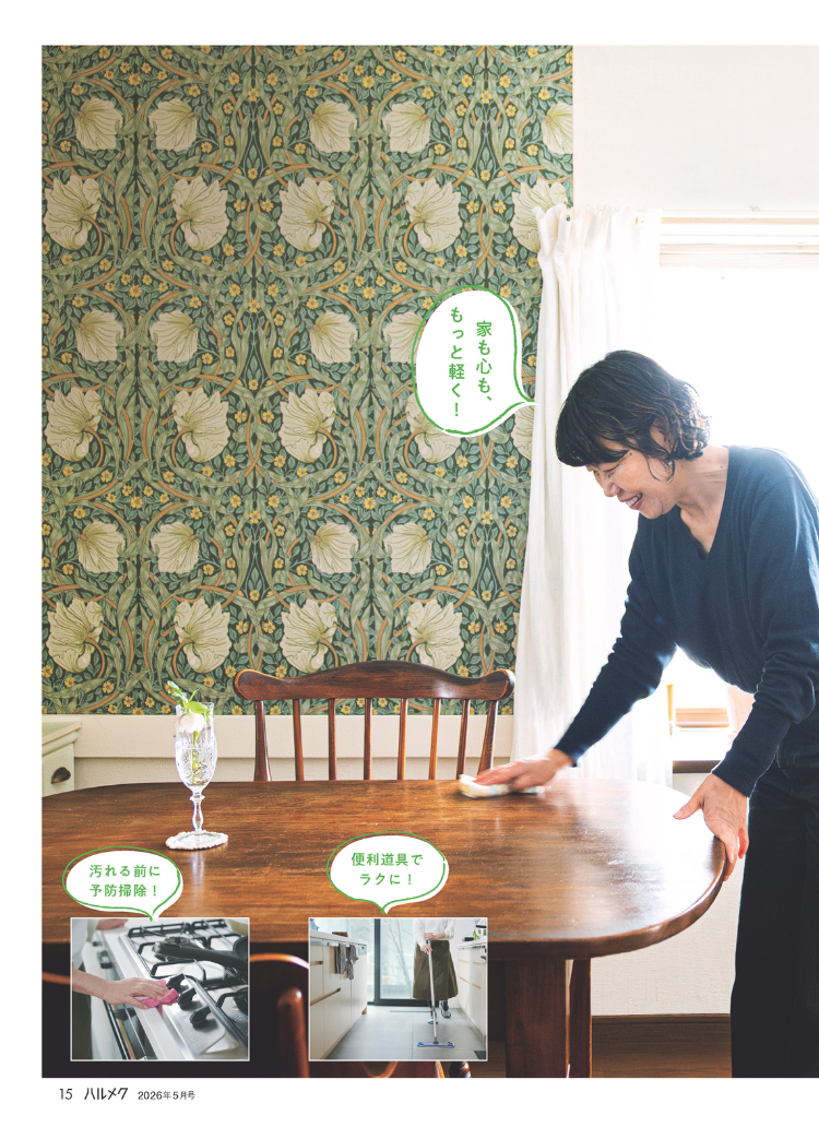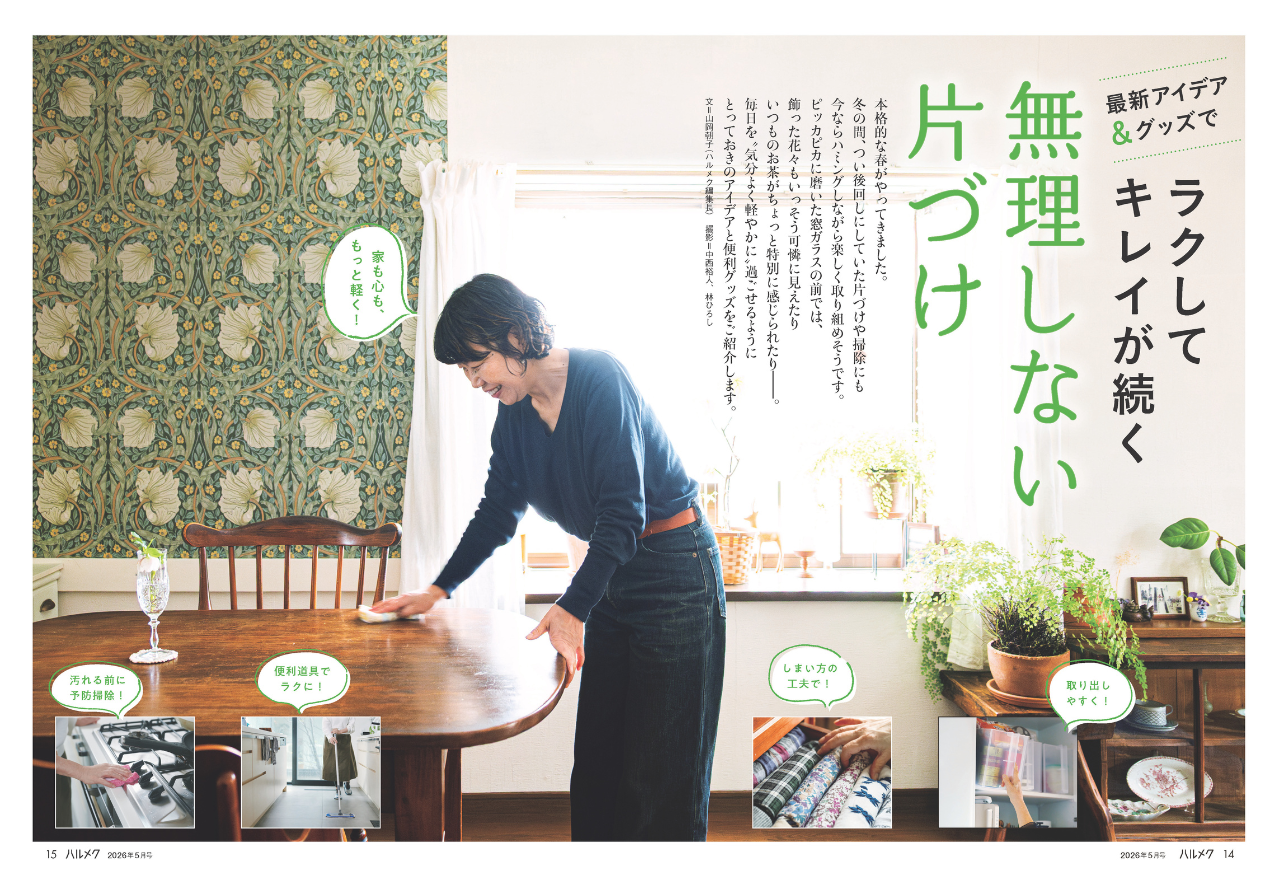 特集では、キッチンや部屋を楽しく整えるアイデアもたっぷりご紹介。さらには、「物を減らしたいけれど捨てられない」という方のために、心と体を軽くするヒント集も。